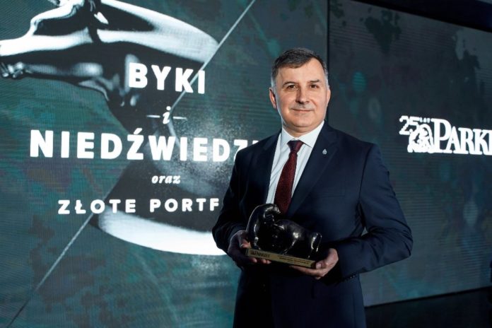 Zbigniew Jagiełło, prezes Zarządu PKO Banku Polskiego wyróżniony nagrodą specjalną Byki i Niedźwiedzie